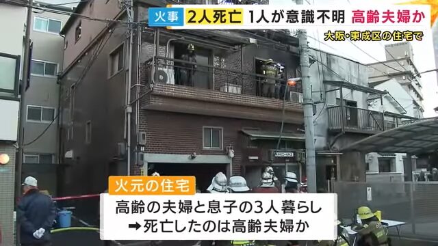 住宅3棟が燃え、火元の住宅に住むとみられる2人が死亡し、1人が意識不明の重体です。
