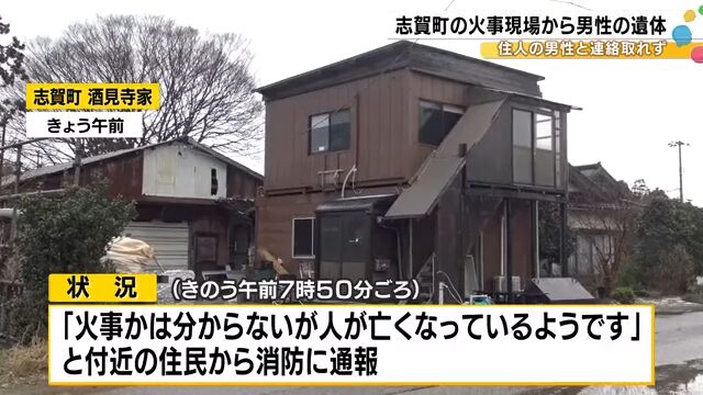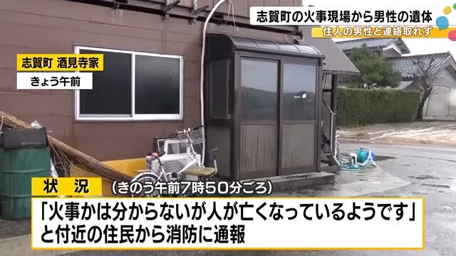 29日午前7時50分ごろ志賀町酒見寺家の住居兼事務所で「火事かは分からないですが人が亡くなっているようです」と付近の住民から消防に通報がありました。