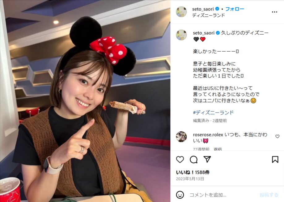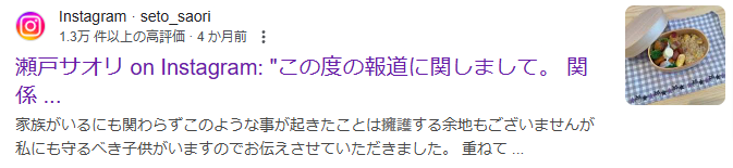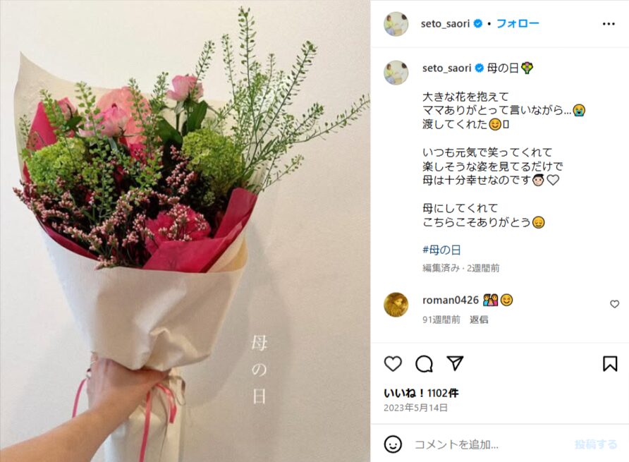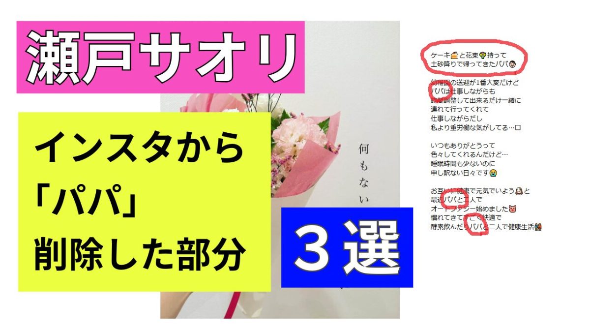 【画像】瀬戸サオリがインスタ削除した「パパ」の部分3選!